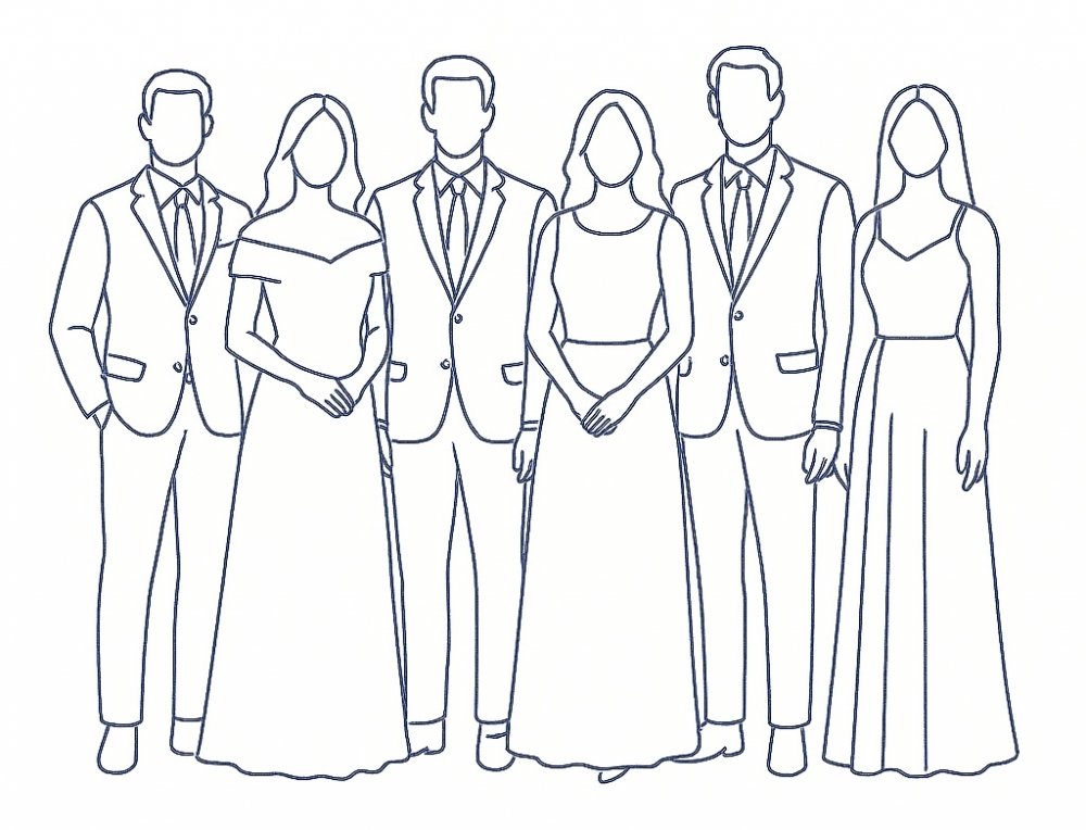Traje social completo — e, para entrar no clima, evite tons muito claros. Queremos todos à vontade para aproveitar esse momento com a gente!